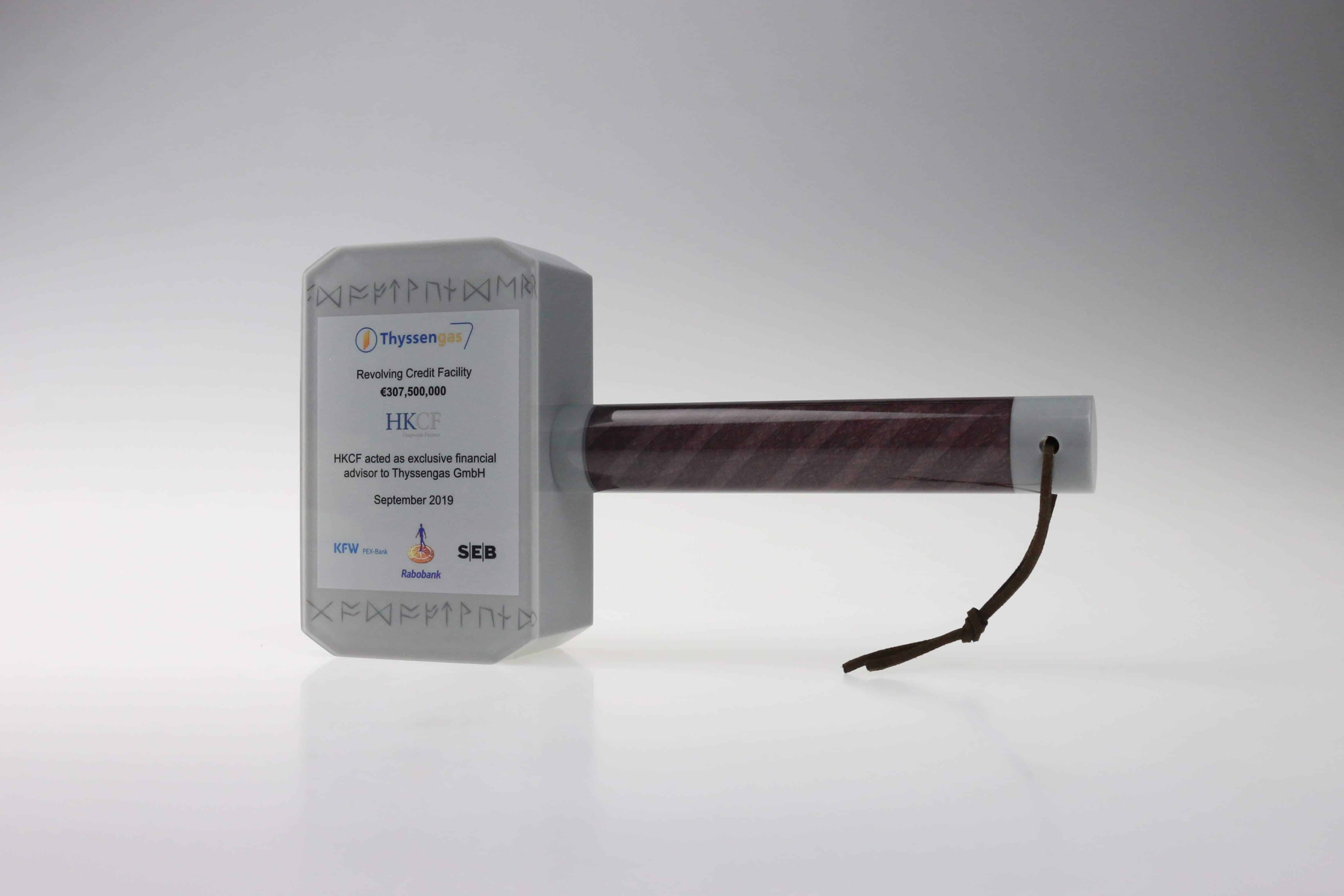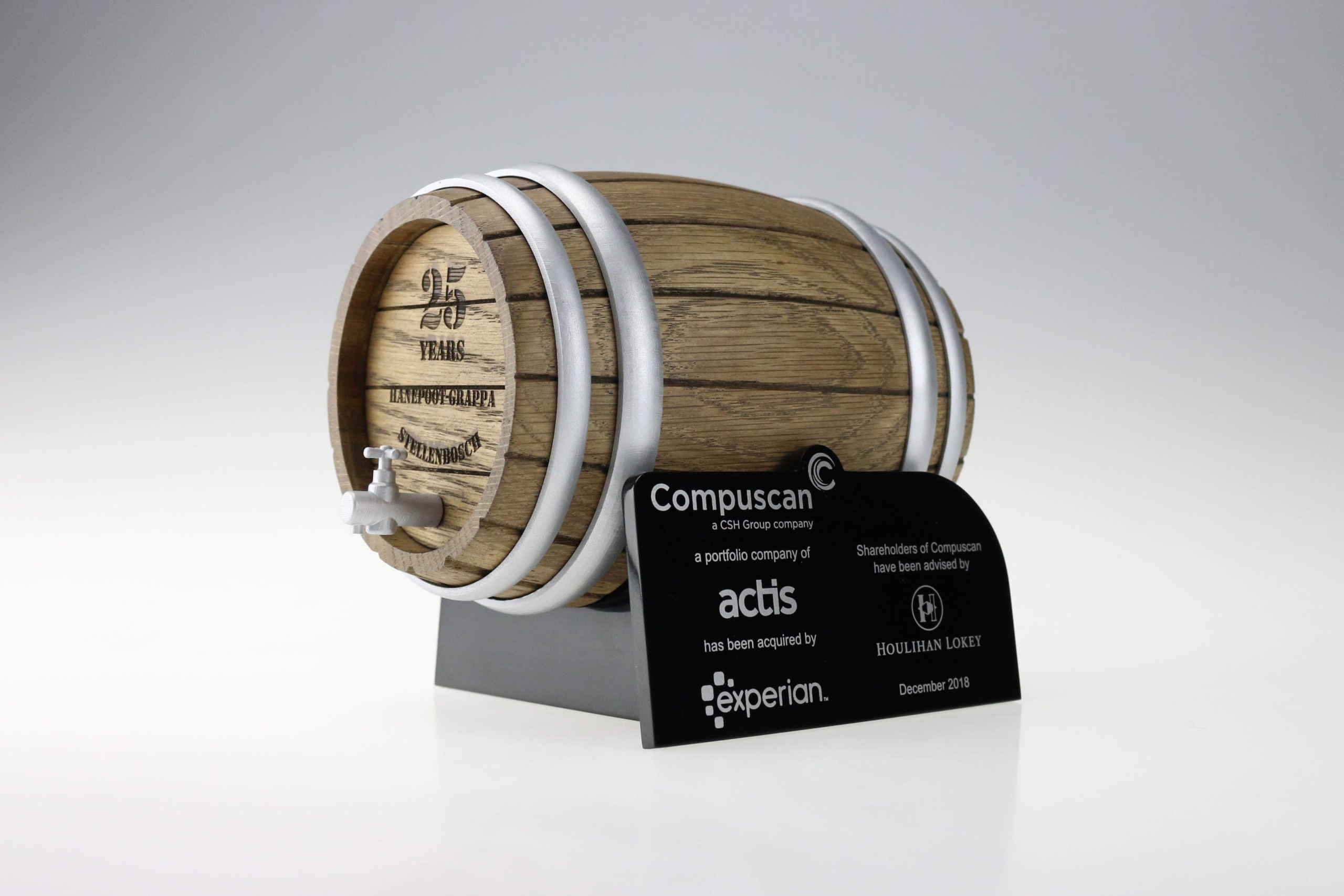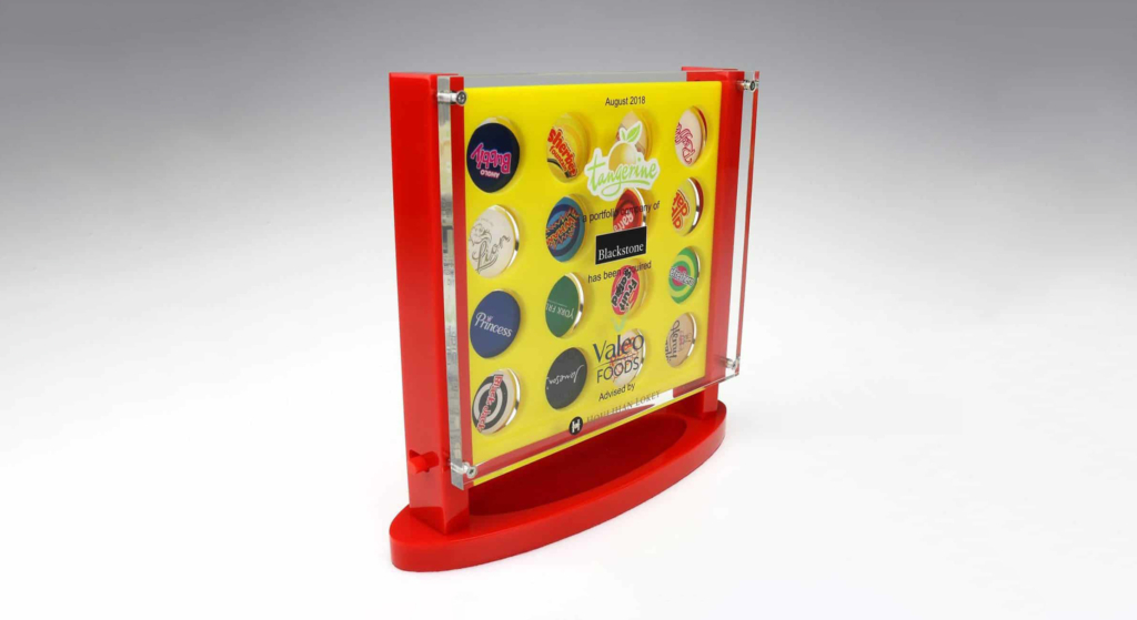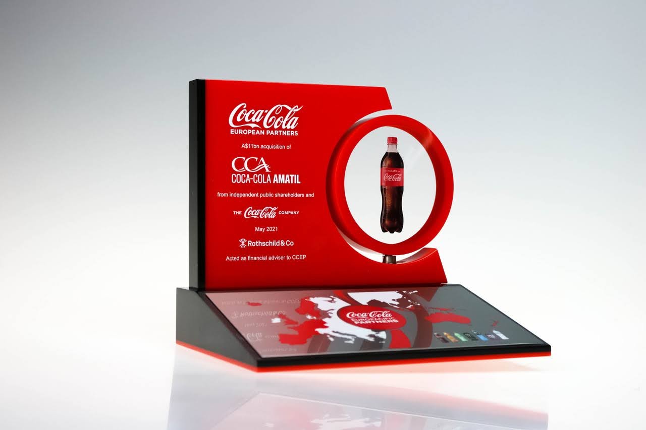 A bespoke commemorative item created to celebrate a completed corporate transaction.
